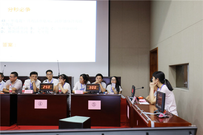 经过一番激烈的角逐,医院组小妲己直播 代表队、温州市中西医结合代表队,社区组瑞安市社区代表队、鹿城区社区代表队,企业组温州延生堂控股集团代表队、温州叶同仁综合门诊部代表队杀入了总决赛。总决赛于当晚6点开始,各位评委专家仍精神抖擞,严格对台上对手的简答题回答做出评分及判断。第一轮我院以230分优势与温州市中西医结合医院齐头并进。紧接第二轮抢答环节,各位选手蓄力待发,我院三位选手渊思寂虑、分工明确、相辅相成,于大屏幕闪过题目的片刻,即可做出反应。队员朱晶晶各种以迅雷不及掩耳之势顺利抢答,获得了多项题目答题权,在拼杀过60道抢答题之后,我院以唯一超过300分的优势遥遥领先!最后一轮,奋力拼搏。我院代表队在领队提出的策略下,稳中求进,选择相对保守的分值题,正如《孙子·军争》所言:“其疾如风,其徐如林,侵掠如火,不动如山”!