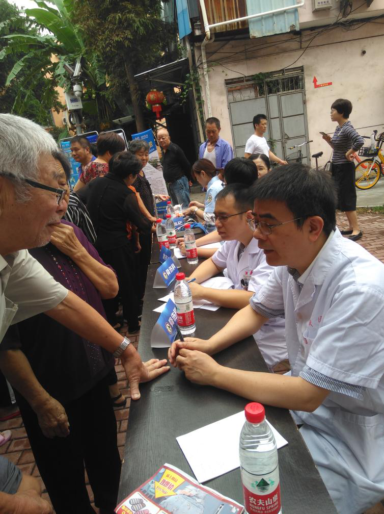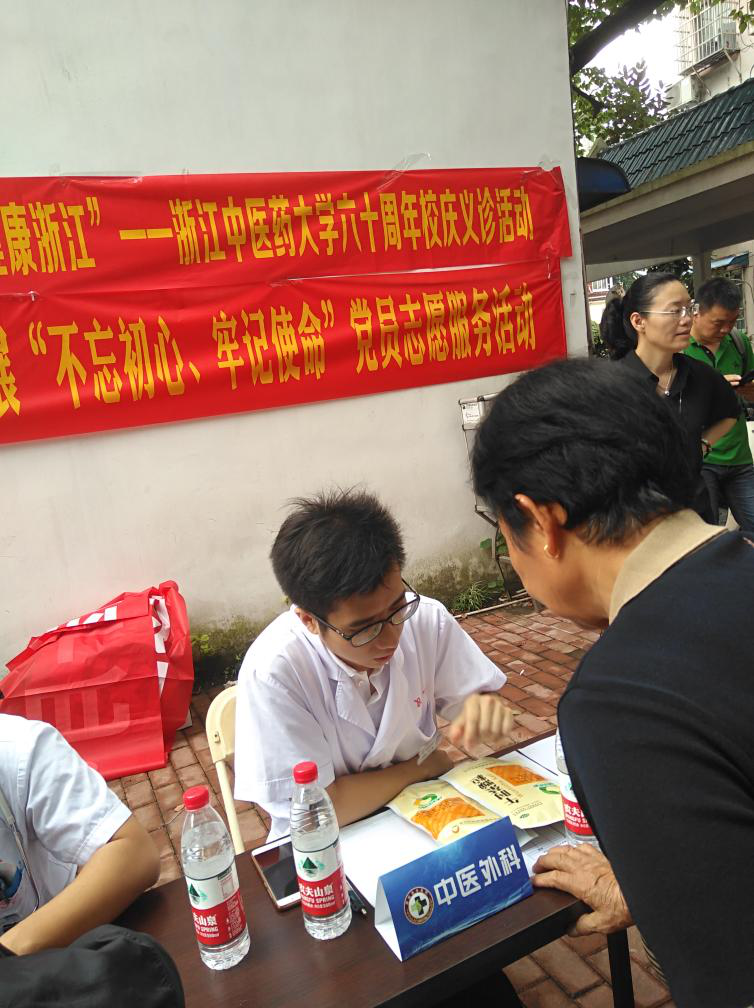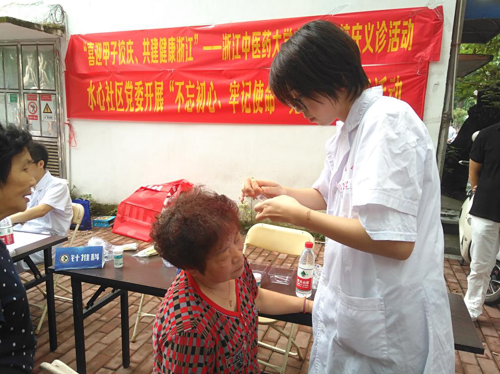 于今日上午在市水心社区组织了一场“喜迎甲子校庆,共建健康浙江”浙江中医药大学60周年校庆义诊活动。