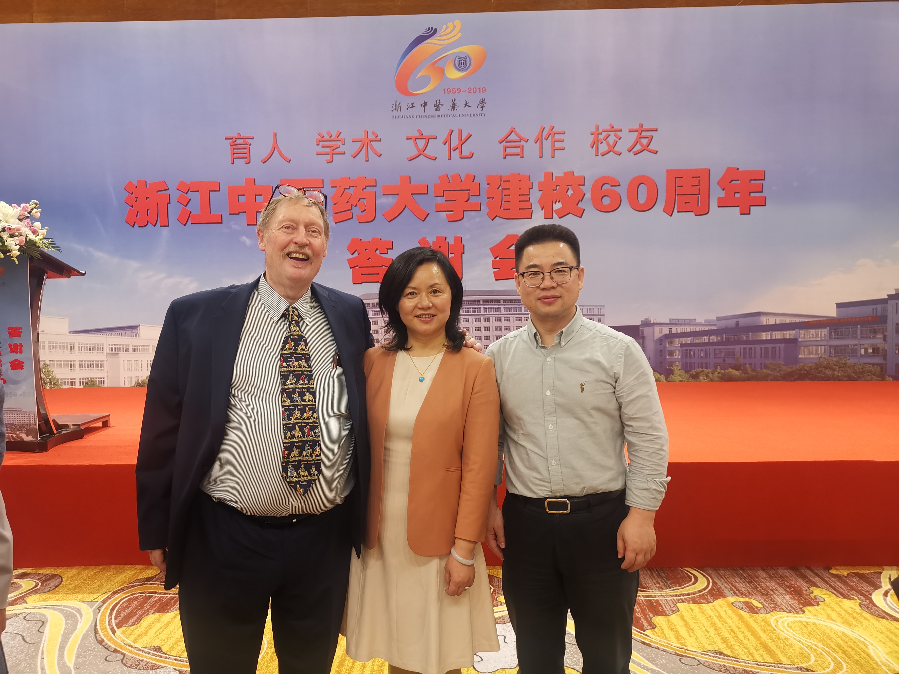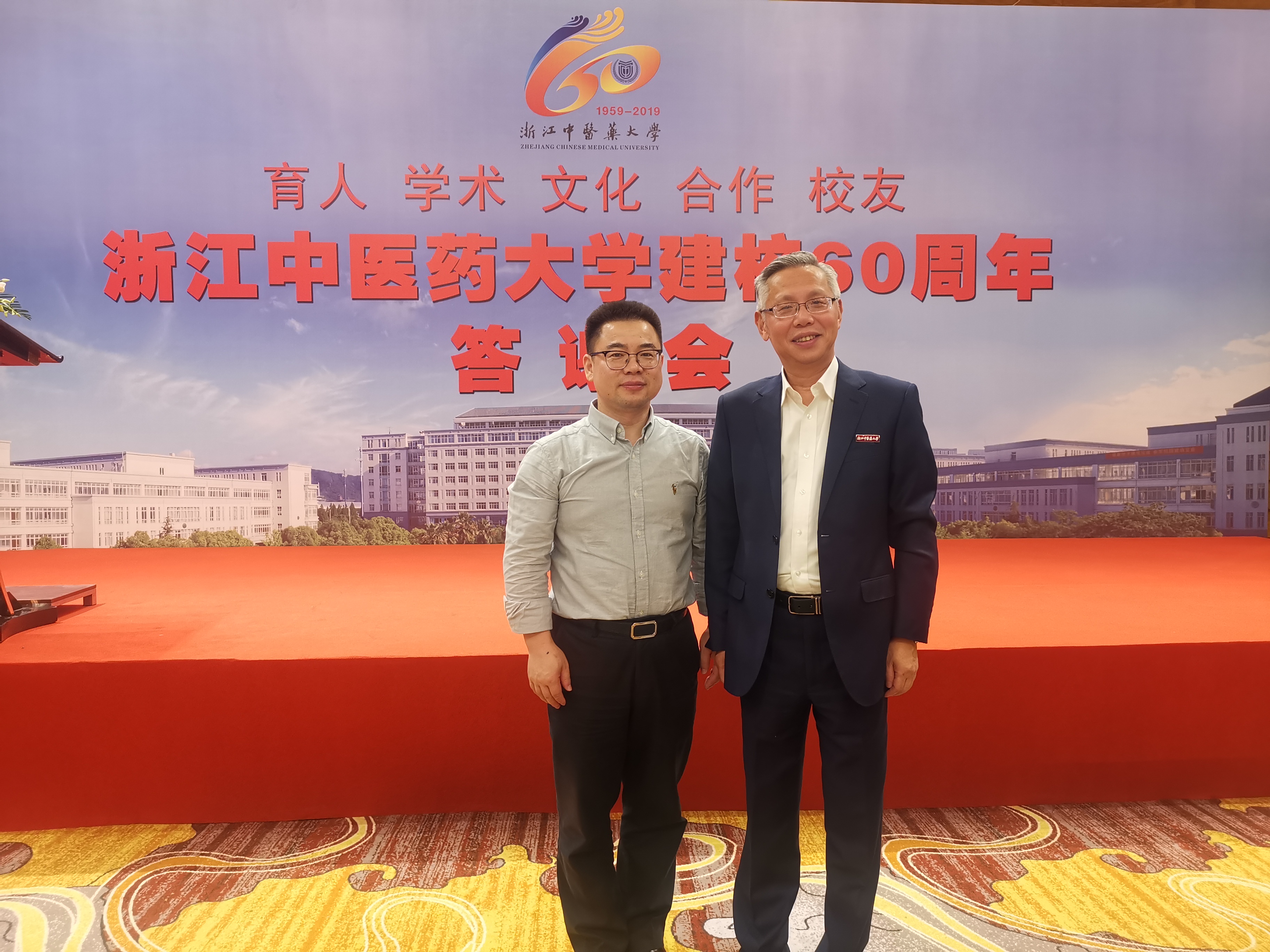 新时代再谱新篇,一甲子砥砺奋进,10月19日,浙江中医药大学建校60周年纪念大会暨“一带一路”中医药传承与发展国际论坛开幕式隆重举行。浙江中医药大学师生、校友齐聚滨文校区,为母校庆生,校内外洋溢着喜庆的气氛。我院王庆来书记以优秀校友的身份,受邀参加了大会,并在校友代表大会上致辞。我院林国明主任也受邀参加了大会并代表比利时中医药联合会向学校发去贺信。