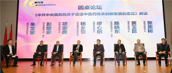 论坛还安排了圆桌会议环节,针对《中共中央国务院关于促进中医药传承创新发展的意见》进行解读,小妲己直播 朱文宗院长主持。杨乡雪处长、各县市区中医院书记、院长围绕主题,各亮“家底”,从不同层面、不同维度,做了全面深入的汇报与交流,探讨了新形势下中医药传承创新发展中的热点、难点话题。