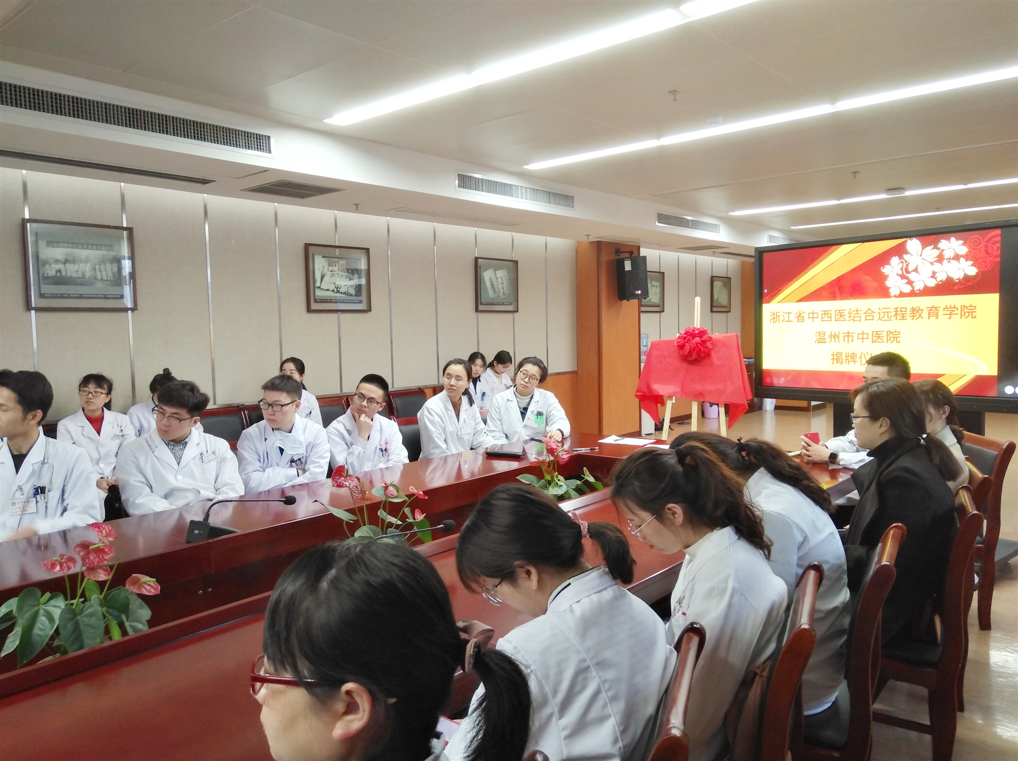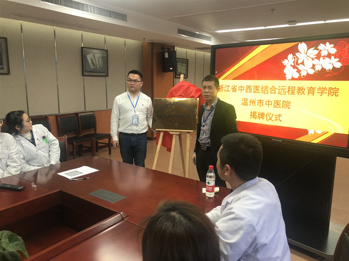 仪式前,医务科科长陈念昭介绍了浙江省中西医结合远程教育学院作用与功能,指出浙江省中西医结合远程教育学院网络平台的应用优势:通过平台暂停或重复播放功能,能实时有效学习教学视频,清楚演示出医学操作,通过录播功能节省教学成本,且网络不受时空限制,方便学习,帮助医师拓宽知识面,积累临床操作经验,实现各医院之间优质医学教学资源共享。