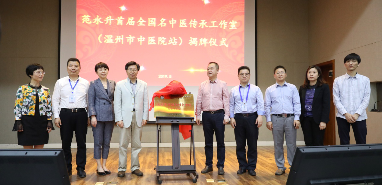 ◆ 首届全国名中医范永升和温州市卫健委副主任吴尚斌共同为“范永升首届全国名中医传承工作室”揭牌