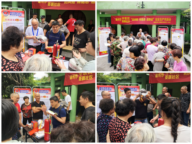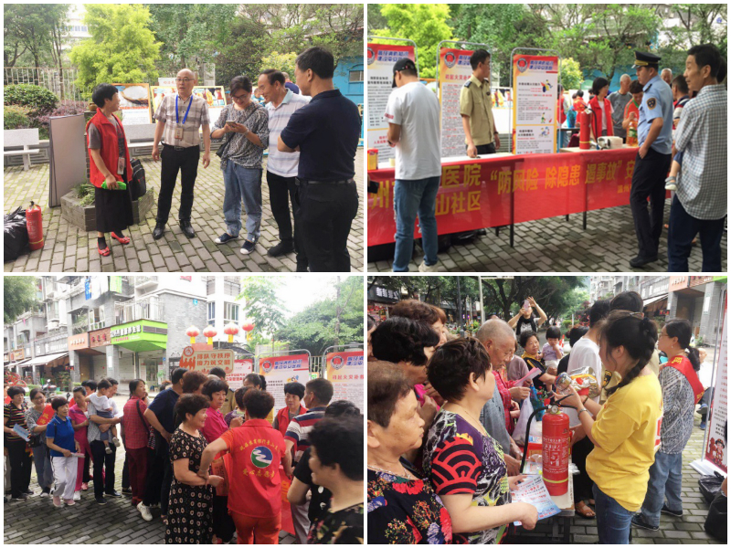 2019年6月10日至12日期间,我院保卫科一行人在麻瑞龙副院长的带领下,联合菱藕、丽庆、景山社区开展下社区安全生产月宣传咨询日活动,重点宣传了常用消防器材的使用,防火逃生知识培训,活动受到社区居民的大力肯定,深感消防知识对他们的重要性。