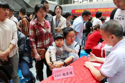 党委书记王庆来主任中医师,院长朱文宗主任中医师、呼吸科主任刘刚主任中医师、院长助理兼康复科主任陈炳主任中医师、妇科卢亦彬主任中医师、消化科主任曾耀明主任中医师、皮肤科主任赵东瑞主任中医师、针推理疗科主任宋丰军主任中医师,针推理疗科叶必宏、方君辉、瞿一新、杨文广、金鲁微、马春燕等各位主治医师、泰顺县中医院针灸推拿医师以及部分护士参加了在泰顺县中医院一楼大厅举办的大型义诊。8点未到,义诊现场就已人山人海,大家排起长龙等待各位医师。义诊过程中医师们亲切认真,群众耐心有序。义诊持续到11:30,比原计划延长一个多小时,接诊病人约450多人,针灸推拿治疗约200多人,穴位埋线5人次,冬病夏治穴位敷贴治疗约200多人,开出中药处方约180张。本次培训班温州市中医药学会副会长兼秘书长陈克平主任亲临会场指导。