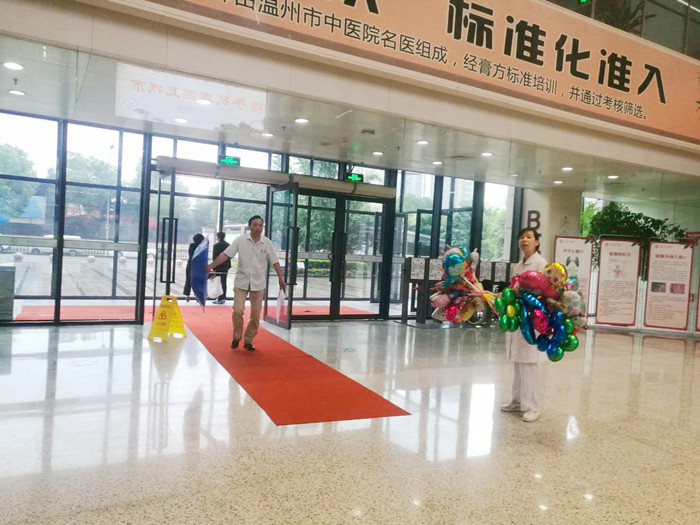小朋友们一进医院大门就收到门诊护士送的彩色气球,有小花的,也有小动物的,各种各样的形状让每位小朋友都绽放了开心的笑容。