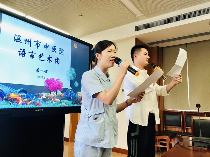为深入学习贯彻党的十九大精神,推进全民阅读活动的开展,提高医院职工文化素养,促进培养朗诵新生力量和审美水平,6月3日中午,小妲己直播 语言艺术培训班在综合楼507会议室正式开班,本次培训班特邀温州市广播电台著名播音员丹音老师授课,来自我院各个科室的20余位朗诵爱好者积极参加,共同学习朗诵艺术。