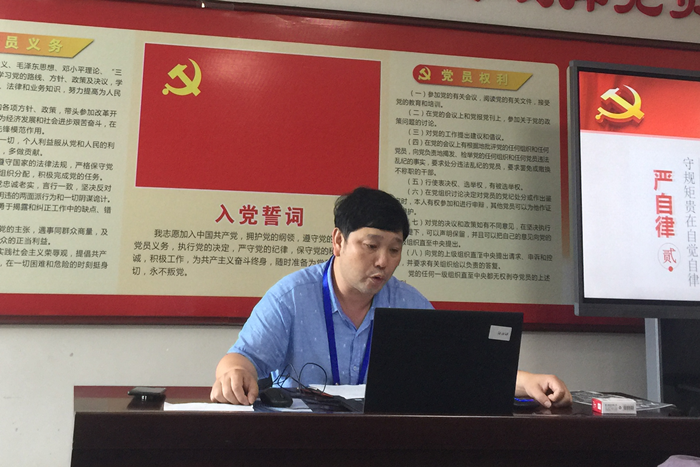 为了隆重纪念建党97周年,深入学习贯彻习近平新时代中国特色社会主义思想和党的十九大精神,2019年8月14日中午,在我院综合楼党员活动室里,医技党支部根据卫健委党委文件要求,举行主题党日活动。会议由支部书记夏平易主持,医剂支部的20多名党员和预备党员参加会议。