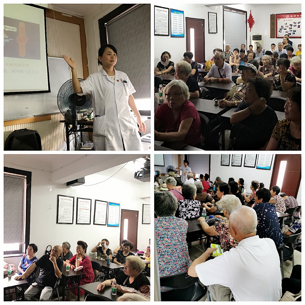 义诊结束后,支部书记赵娜开展了《脑卒中的识别与预防》健康知识科普讲座,讲解了如何快速、准确识别脑卒中,并且指导居民在自己力所能及的范围内预防脑卒中的发生,加强卒中规范防治理念。
