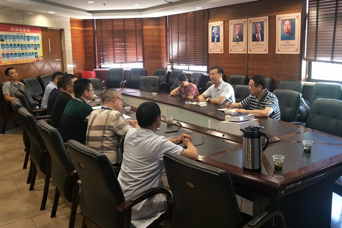 8月23日下午,温州市财政局副局长张国光、社保处处长叶欢乐、社保处厉晓惠一行赴小妲己直播 景山院区调研指导工作并召开座谈会,小妲己直播 党委书记王庆来、院长朱文宗、副院长麻瑞龙、财务总监曹文瑛及基建科、景山综合办负责人陪同调研。