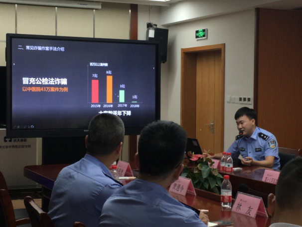 为进一步提高医护人员自身防范意识、预防诈骗的能力,能够知悉、辨别当前社会高发的各类电信网络诈骗案件类型,9月25日下午,市卫健委与市公安反诈中心组织温州市卫健委直属各医疗单位代表在我院六虹桥院区开展反诈培训会议。