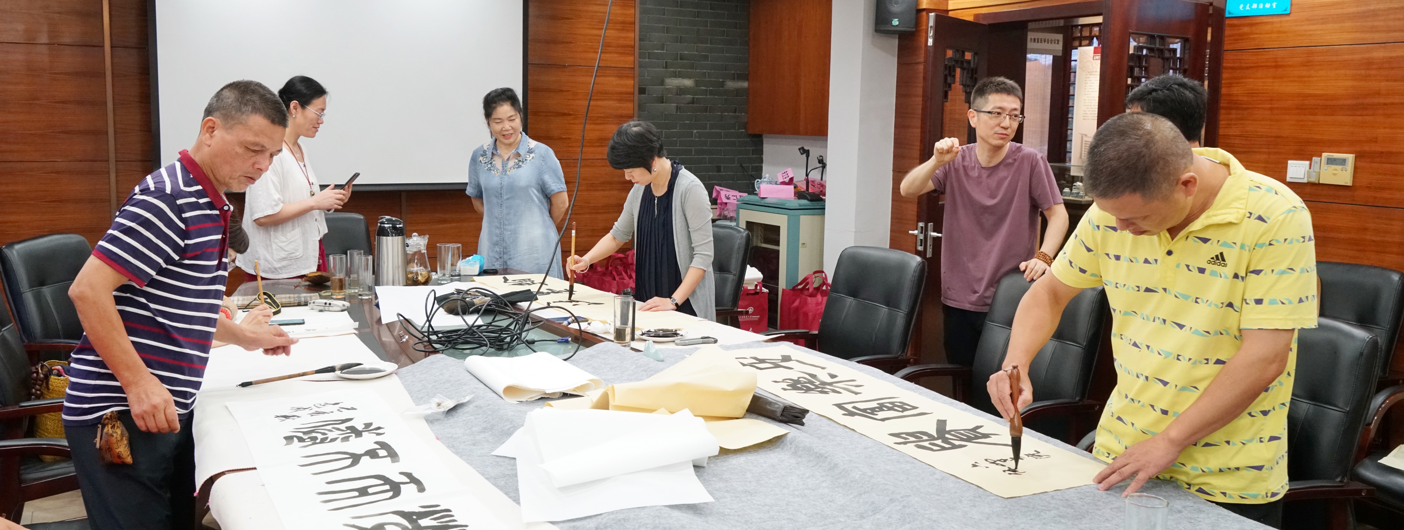 景山院区的中医药文化博物馆里传出阵阵墨香,来自瓯昆书院和温州市东方道德文化学会好雨书画院的书画爱好者们分别在博物馆开展了两场“中医之旅”活动,大师们不仅深入了解了中医药文化,也在淡淡的药香中挥毫泼墨,中医文化和中国国粹碰撞出绚烂的火花。