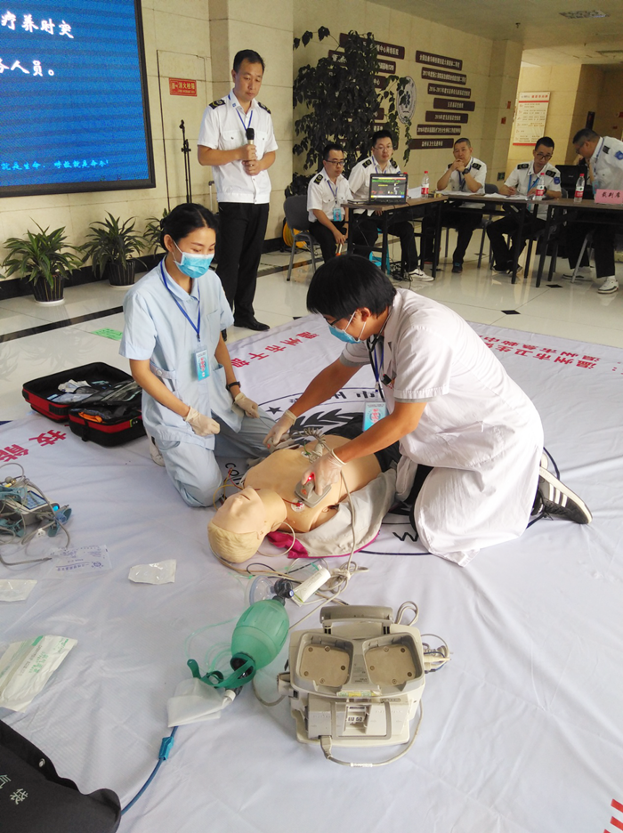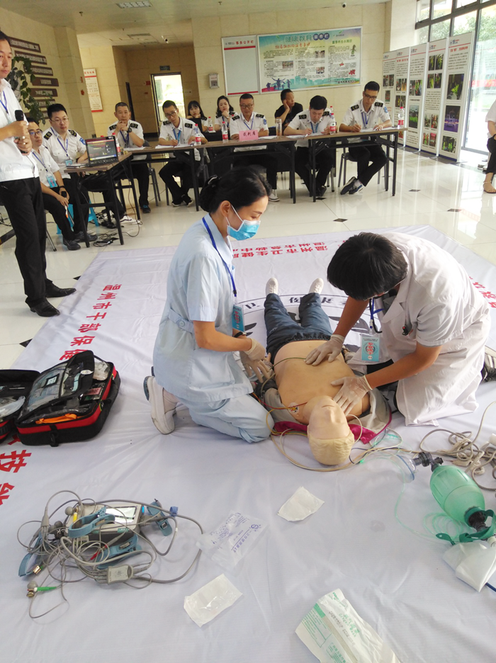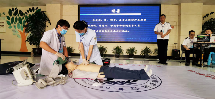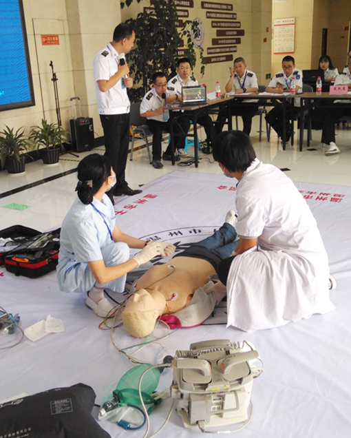 (我院参赛团队在现场进行电除颤操作)