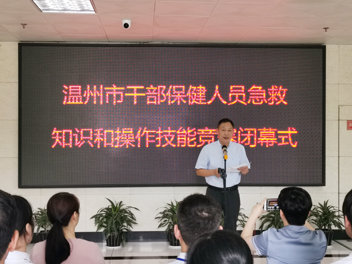 (温州市卫健委副主任徐斌领导在竞赛闭幕式上发表讲话)