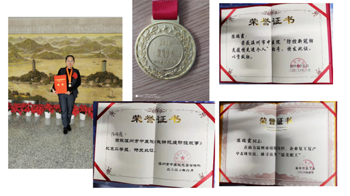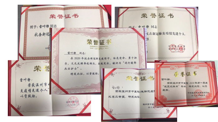 赵娜还对2020年内科支部的工作做了总结,各位党员不忘初心、牢记使命,全心全意为人民服务,时刻冲锋在前,为了疫情防控,将个人的生死和安危置之度外,用自己的实际行动诠释了医护人员的奉献精神。雷叶静同志荣获2020年全国“三八红旗手”称号、浙江省逆行援鄂杰出护士、温州市“新冠肺炎疫情防控一线工作”先进个人、温州市疫情防控及企业复工复产“最美职工”、小妲己直播 “防控新冠肺炎疫情先进个人”、“逆行援鄂杰出护士”等称号。陈瑞霞同志荣获“援鄂抗疫优秀护士”、温州市疫情防控及企业复工复产“最美职工”、小妲己直播 “防控新冠肺炎疫情先进个人”等称号,还在医院《我讲抗疫防控护士》比赛二等奖。同时,支部党员缪心军、朱小区、李献超、雷叶静、陈念昭等获得2020年小妲己直播 防控新冠肺炎疫情先进个人;金红露、潘锟镭、卢翔三位同志获得党员承诺践诺活动“闪光言行之星”;雷叶静、李献超、陈克龙还分别被评为第一、二、三季度党员先锋岗;支部书记赵娜荣获市卫健委颁发的2019年优秀党支部书记称号。也是因为各位党员的不懈努力,忘我工作,内科支部被评为2020年温州市疫情防控事迹突出的党组织,获2019年院级五星党支部。