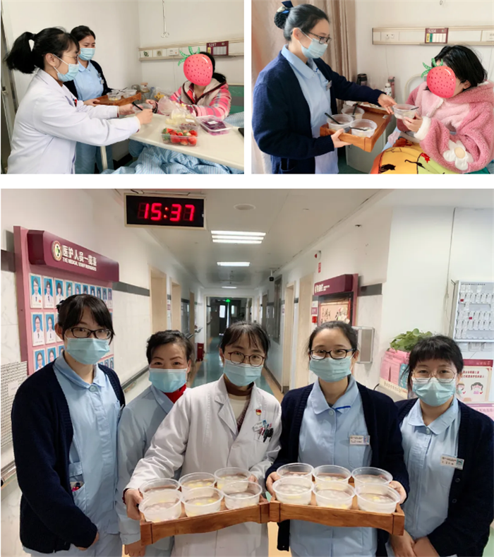 冬至,是我国农历中非常重要的一个节气,古有“冬至大如年”的说法。在我们江南一带,汤圆是我们冬至必备的食品,圆意味着团圆、圆满,为了让住院患者感受节日的气息,妇科1的医护人员们特意为患者们送上一碗盛着节日祝福的汤圆,让患者在住院期间也感受到节日的氛围。