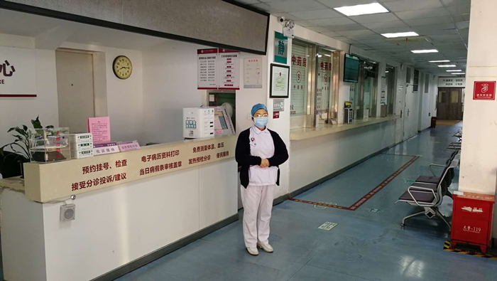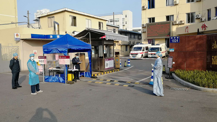 水心院区在姜伟主任的带领下,严把疫情防控关,在入门处为患者及家属进行体温测量,甄别发热患者,进行手部消毒,避免传染源进入医院。