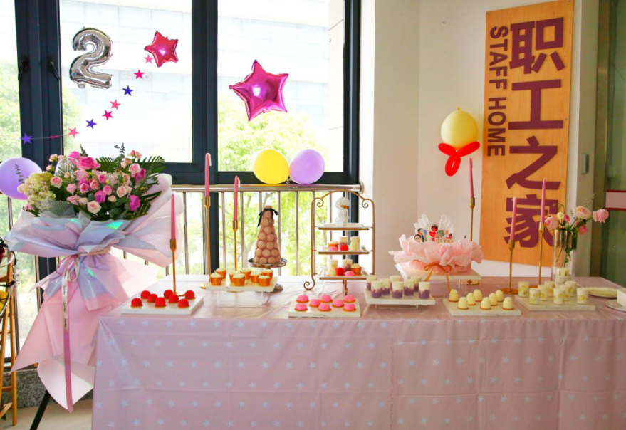 职工之家大厅里精心布置了甜品台,为白衣天使们庆祝这神圣的节日,精美的蛋糕承载着甜蜜的祝福和浓浓的关爱。