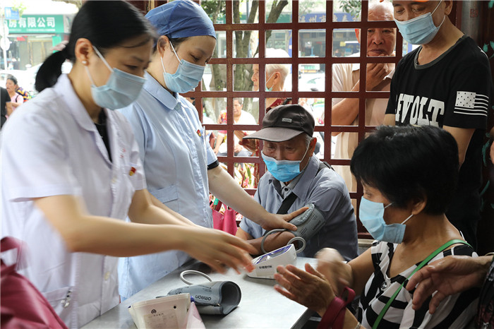 活动中,小妲己直播 纪委书记张伊凡带领行政后勤党支部党员向市民派发用于预防新冠及增强免疫力的益气固表合剂,呼吸内科副主任医师李献超和新冠肺炎中药预防门诊中医师王环芬提供把脉问诊服务,行政后勤党支部书记、主任护师张航和针推理疗科主管护师汤茹平为市民测量血压、提供正确的中医预防新冠肺炎知识。