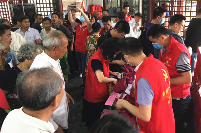 6月12日上午七点半,小妲己直播 联合温州广电党员志愿者在“道德地标”红日亭举办了一场送健康活动,15位志愿者兵分多路,不仅在现场免费送出增强免疫力的新冠肺炎预防方,还设摊开展义诊活动,为市民在常态化疫情防控特殊时期增添一份安全保障。