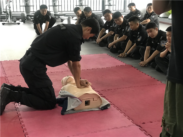 通过40分钟的理论学习后,王洋磊带领战士们在模型上练习心肺复苏术。示范阶段,特警战士为了看清楚各个动作要领,宁可一直站着观看。演练阶段,战士们积极提问并互相当模特实践操作,刘晓主任进行现场指导,并对大家急救动作中存在的错误予以纠正。通过认真的学习,每位战士都掌握了心肺复苏术的要领,相信在以后执勤中,如果遇到心跳骤停患者,能及时施以正确的急救,为患者赢得生的希望。