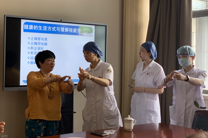 门诊部邀请聋哑人参加爱眼日健康讲座《眼疲劳,生活护理》。