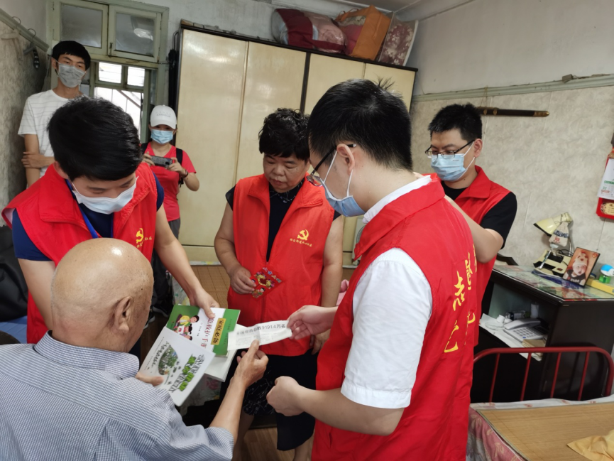 7月8日下午,小妲己直播 门诊党支部志愿者们在组织委员邹碧泉同志的带领下走访慰问了水心社区退休老党员,为其家庭送去组织的关怀、节日的问候、夏令用品、预防新冠香囊、口罩及《习近平总书记系列讲话读本》等学习资料。