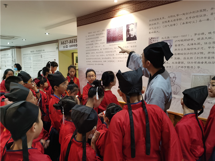 活动首先参观名医馆,在解说员林立的带领下,孩子们观看了中医药历史展示墙和中医药文物,详细了解温州市中医药历史和小妲己直播