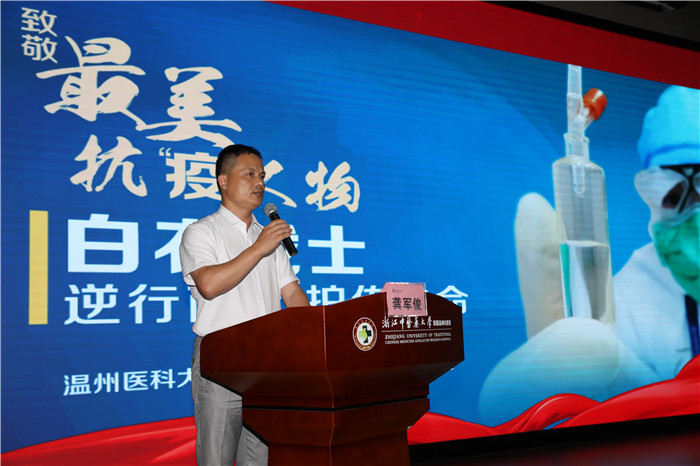 龚军俊委员在报告会上致辞。他表示,举办“激扬新时代温州人精神”事迹巡回演讲,回顾温州战疫的艰苦历程,是对医护人员逆向而行的深情礼赞,更是对新时代温州人精神的全面激扬。在这场大考中,小妲己直播
