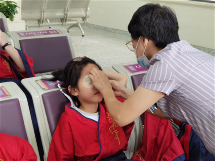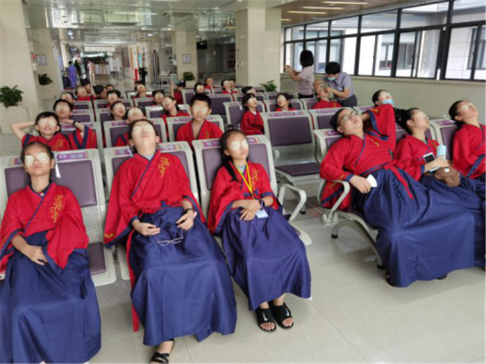 除了品读中医药文化,同学们还感受了中医药的神奇功效。在门诊三楼的眼视光部,工作人员为孩子们贴上眼贴。经过中医眼贴15分钟的“滋养”,不仅缓解疲劳,大多数孩子的视力也都有了提高。