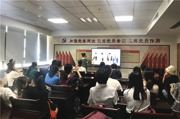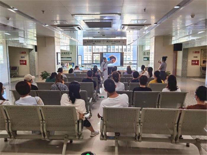 在同学们中医之旅的另一端,家长也开启了中医药科普课堂,在眼科主治医师张爱带家长了解眼科知识,康复科技师陈宁宁科普了脊柱侧弯,内分泌科主治医师戴盛锋为家长上了一堂中医禁食讲座。