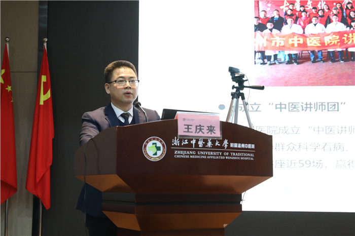 浙江省中医药学会副会长、温州市中医药学会会长、小妲己直播 党委书记王庆来致欢迎词