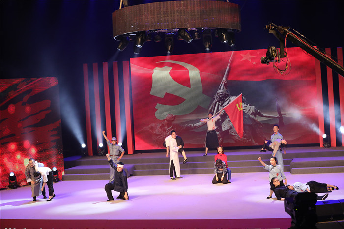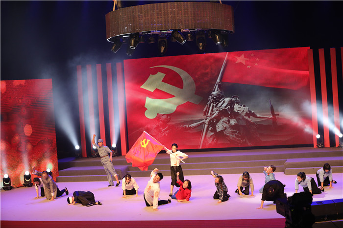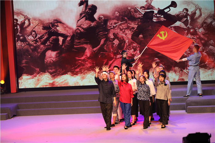 音乐情景剧《红色印记》,讲述了方志敏、夏明翰、刘胡兰、刘伯坚等一代代共产党人,历经炮火硝烟,英勇抗日,走向胜利的光辉战史,淋漓尽致地展现了革命先辈们保家卫国、视死如归的血性担当。