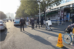 此轮疫情出现以来,保卫科在汤海晓科长的带领下,安保人员持续奋战在工作第一线,他们用实际行动诠释自己的使命和担当。凡进入医院人员、车辆,必须出示健康码、行程码、戴口罩,对发热与非绿码人员做好引导工作,大家的宗旨是“宁可十防九空,不可失防万一”。