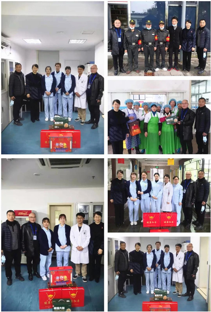 党委书记王庆来、院长朱文宗等领导班子及相关职能科室负责人,分别来到各院区走访慰问,向各院区各科室坚守工作岗位的医护人员和后勤人员送上最诚挚的谢意,并致以节日的问候。祝愿大家在新的一年里:工作顺利、身体健康、阖家幸福、万事如意!