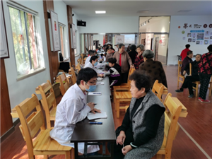 义诊团队对群众免费进行血压、血糖、血尿酸的测量。