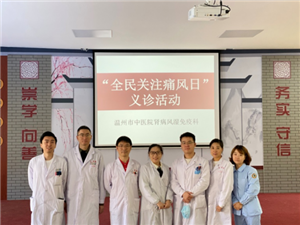 4月20日,是第四个“全民关注痛风日”,肾病与风湿免疫科在松台街道茶花社区文化家园组织开展科普和义诊活动,向社会、向人们普及高尿酸血症的危害。