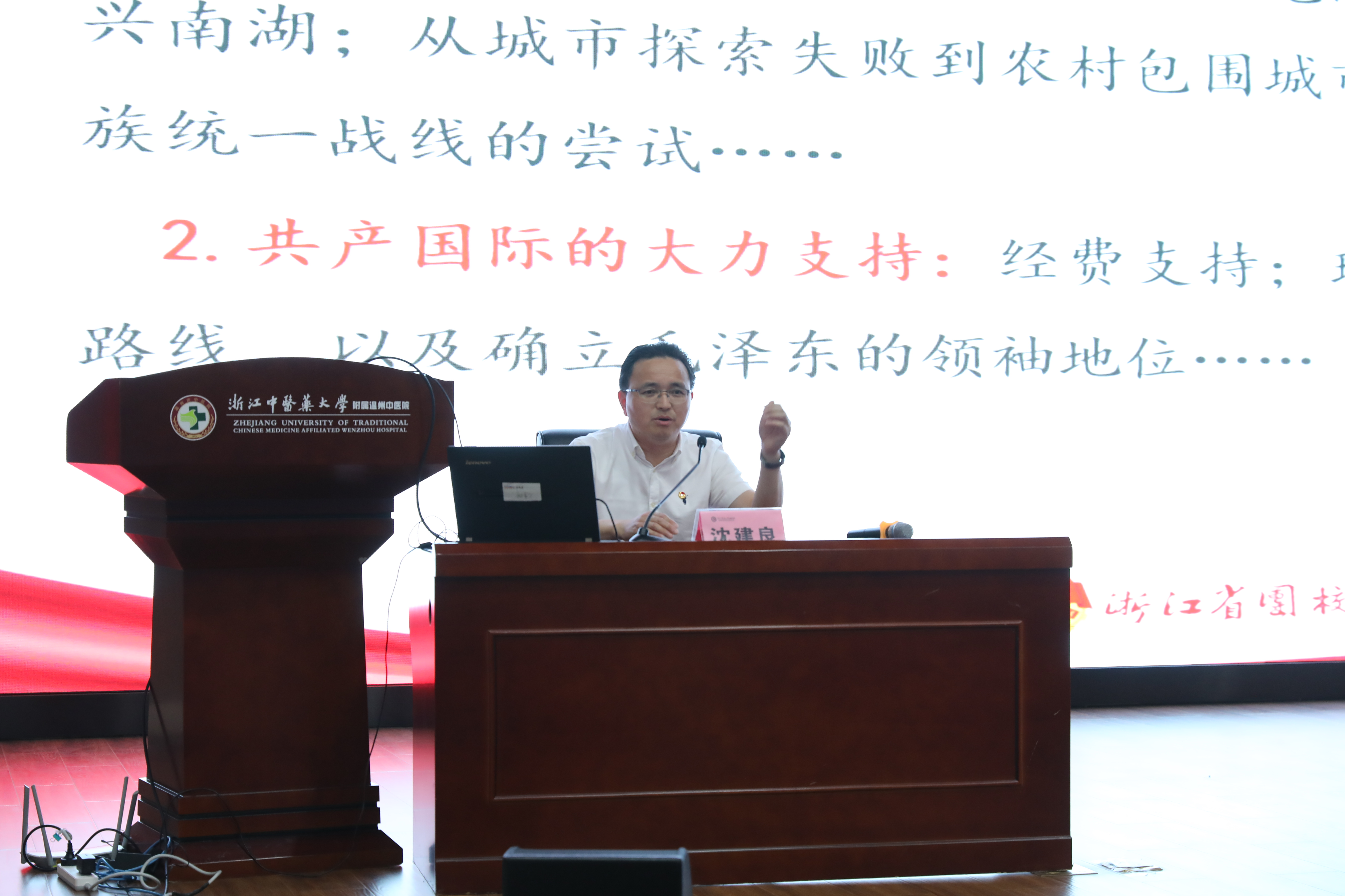 此次活动特邀请到浙江省团校干部培训中心主任及副教授沈建良老师进行关于《让历史告诉未来——百年党史的启示与新时代青年的使命》的讲课。