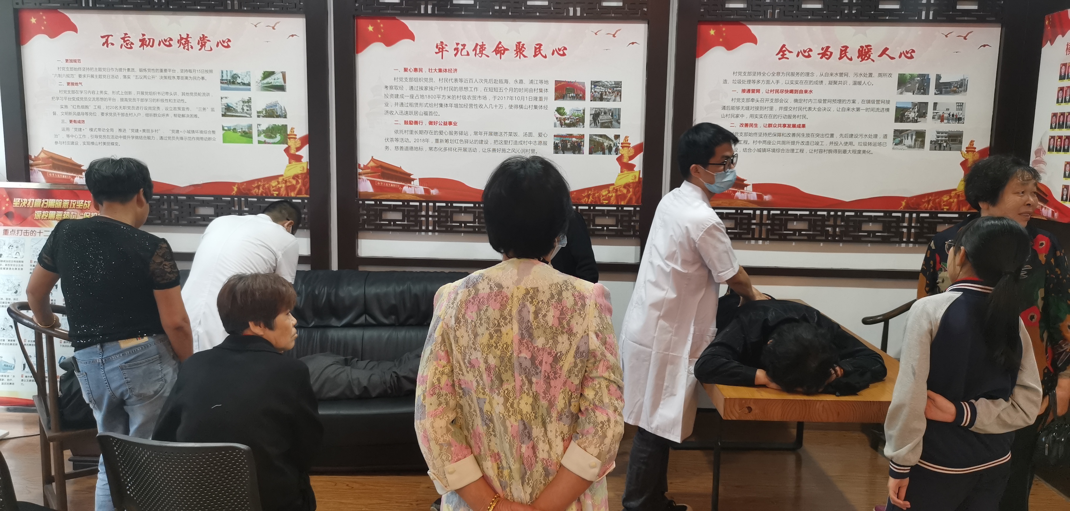 红心向党,仁心向民。作为医务工作者,发扬党的群众路线的最好的方式就是用医术造福一方民众。在建党100周年来临之际,响应市卫健委系统“红色百年·医路同行百场志愿服务活动”的号召,在小妲己直播 院长朱文宗的带领下,门诊党支部联合组织神经内科、老年病科、康复科、五官科、针灸推拿科、中医护理科等专家,于5月19日赴鹿城区山福镇横山村开展送医送药活动。