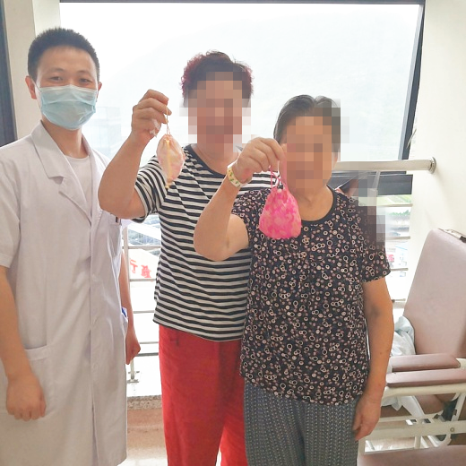 香囊既美观又驱蚊,可以佩戴在身上、挂在包上、挂在床头……收到香囊的病人开心极了,迫不及待的往腰上一挂,有种立马把蚊子赶光光的即时感,那一脸可爱笑容让这个节日变得生动活泼起来。