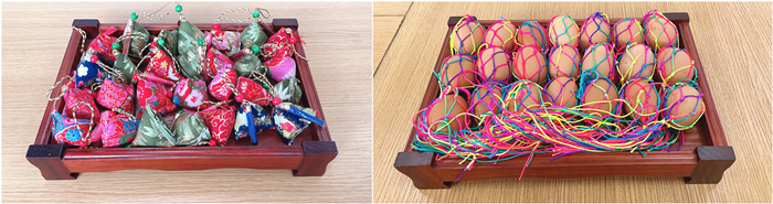 香囊可避除秽恶之气,里面常用的是具有芳香开窍的中草药,在湿热比较重的温州夏季尤为合适。端午送香囊意在为患友宣散病邪,祈愿患者早日康复。