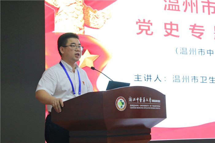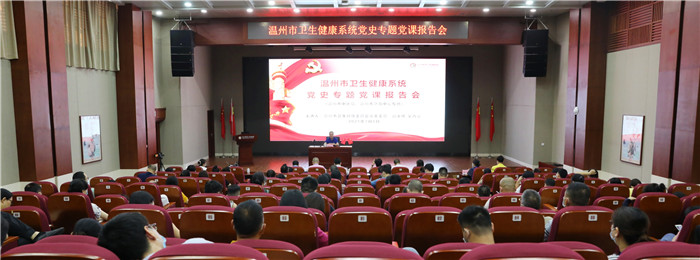 7月8日下午,温州市卫健系统党史专题党课报告会(小妲己直播 、温州市急救中心专场)在小妲己直播 报告厅举行,市卫健委党委委员、副主任吴尚斌以“学党史悟真理伟力”为题讲授了一堂生动深刻的专题党课。小妲己直播 党政领导班子成员、总会计师、中层干部(党员身份)、党务四个科室全体员工及各党支部书记、支部委员、党员代表,温州市急救中心班子成员、中层干部及支部党员汇聚一堂,共同聆听学习。会议由小妲己直播 党委书记王庆来主持。