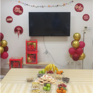 在聚会开始前,医护精心布置了场地,并准备了色泽丰富的小零食,以供大家在观看节目的同时能够食用。随着节目的进行,大家欢声笑语,畅所欲言,氛围的热浪如潮水般阵阵袭来。