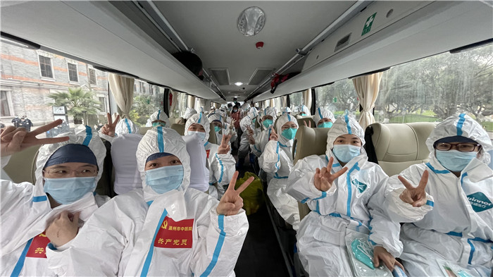 “我们的目标很明确,就是快速而坚决地打败新冠病毒!”院长朱文宗和副院长赵永强、陈炳为队伍鼓舞士气,表示要发扬中医院人“大医精诚 仁术普安”的精神,在疫情防控工作中继续发挥力量与作用,同时,他们也嘱咐大家注意做好个人防护,保重身体,不负重托圆满完成抗疫任务。