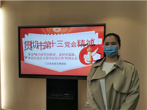 会议分“三步曲”开展,首先组织观看第十三次党代会的新闻报道了解盛会内容,再由支部青年宣讲员王杨淑仪对本次党代会内容进行宣讲课,认真学习盛会精神,最后邀请会议代表现身说法,零距离感受盛会内涵。