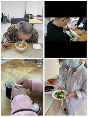活动开始,治疗师简单介绍活动流程,让患者大脑形成活动步骤,主动地参与做汤圆的过程。随后,治疗师根据患者功能损伤程度为其选择更适合的活动工具并耐心指导鼓励患者,让患者在这个活动中获得信心。患者神经损伤两个月以来第一次尝试简单烹饪,吃到了自己亲手做的汤圆,内心激动无比,对接下去自己回归家庭充满信心!