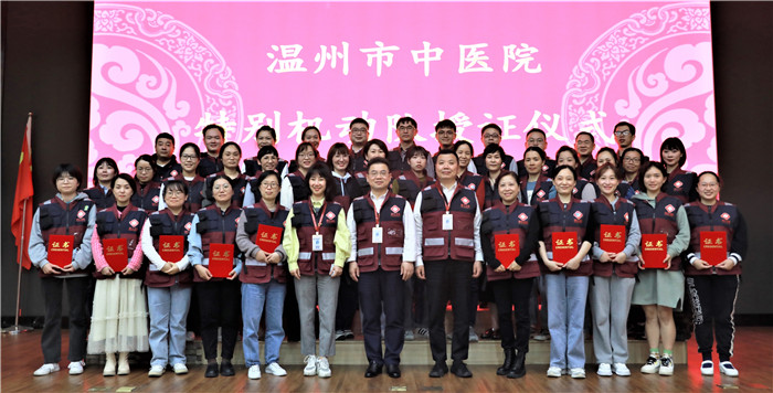 最后,由医院党委书记王庆来、院长朱文宗为4名副队长颁发任命证书,副院长赵永强、纪委书记张伊凡为36名机动队员颁发任命证书。