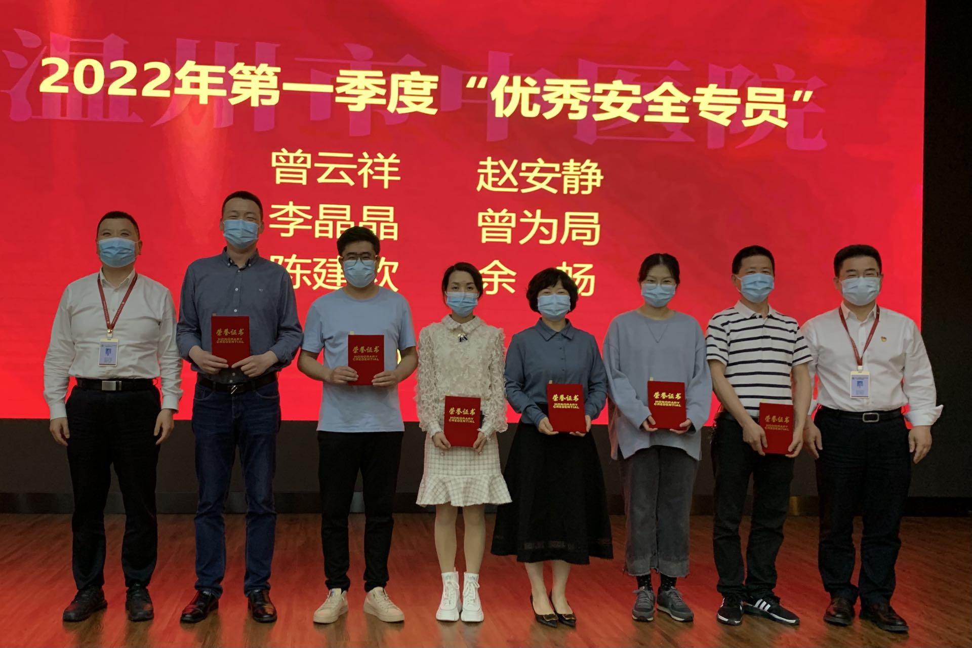 党委书记王庆来、院长朱文宗随后向六位表现突出的“2022年度第一季度优秀安全专员”进行颁奖。