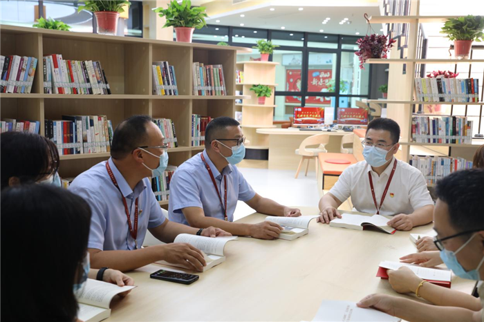 在现场同步开展的“红七月党建图书专题书展活动”中,王庆来书记与朱文宗院长分别向党员们推荐了《干在实处勇立潮头——习近平浙江足迹》、《习近平法治思想学习纲要》等学习用书,倡导全院党员干部好读书、读好书,共同营造浓郁的书香氛围。