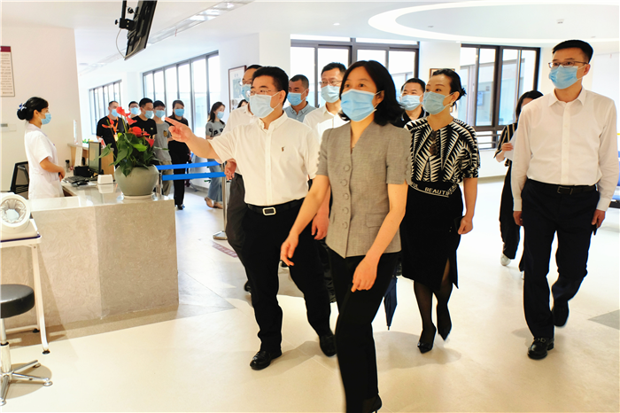 章月影一行参观考察了门诊、病房等,了解了院区定位、主要诊疗范围及医养结合模式的开展情况,并慰问医务人员。