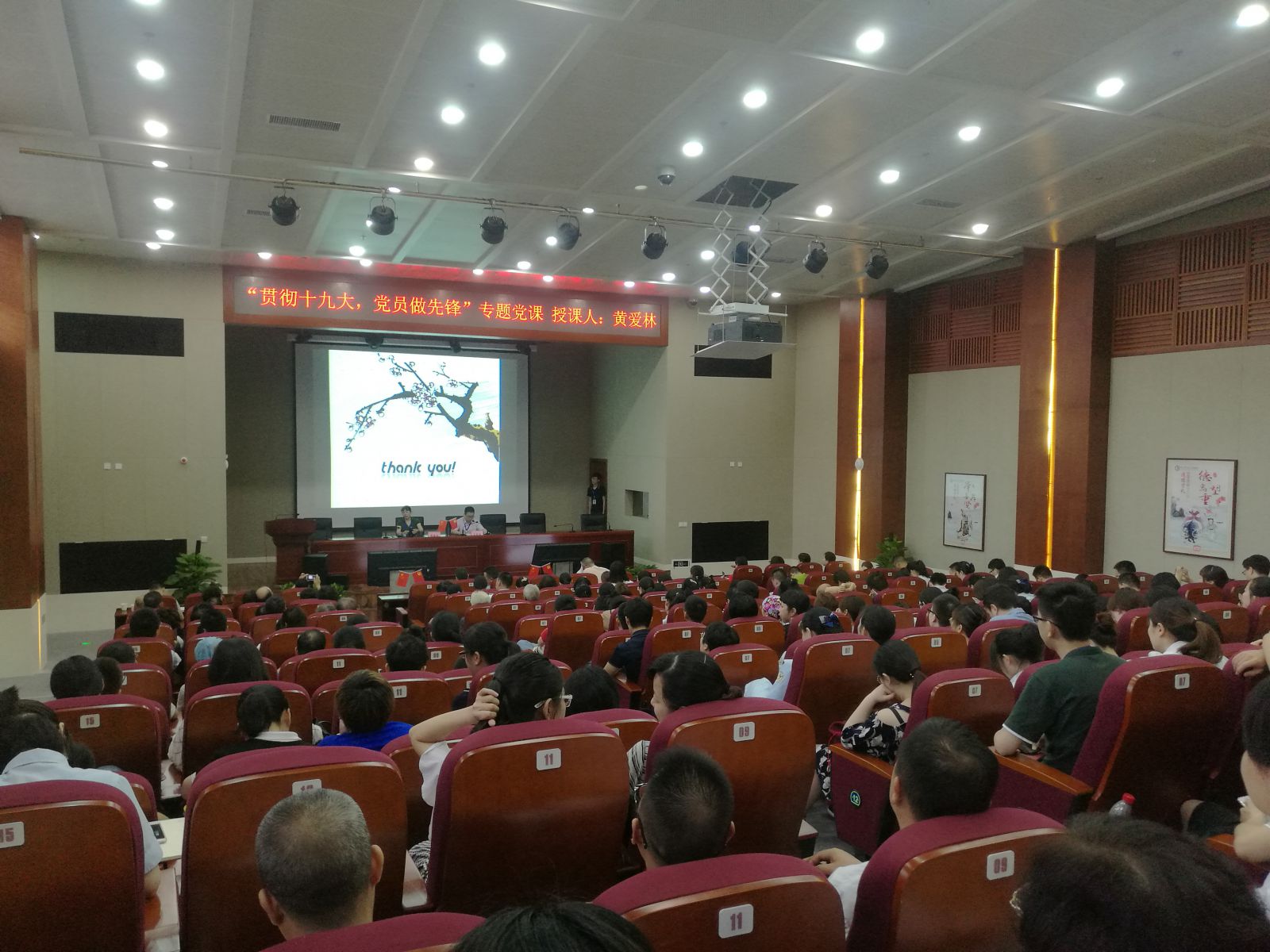 为学习贯彻习近平新时代中国特色社会主义思想,勉励广大党员不忘初心,牢记使命,按照市卫计委工作部署,7月13日下午,我院党委举办“贯彻十九大,党员做先锋”专题党课,黄爱林党委副书记现场授课。
